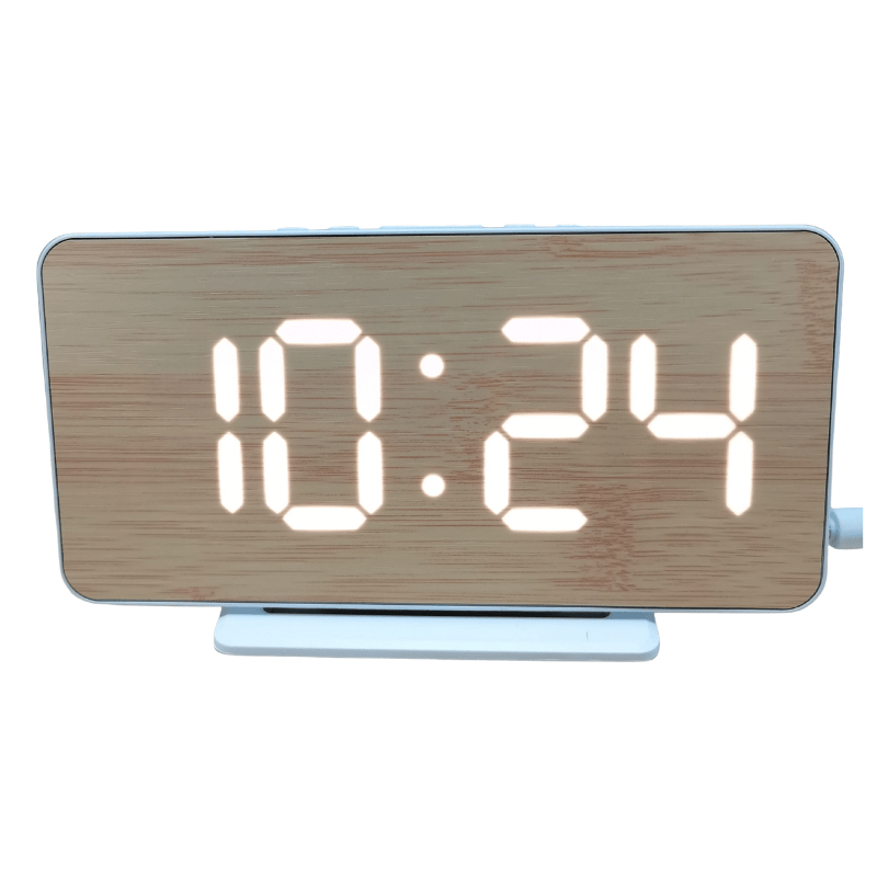 Ce réveil effet bois affiche l’heure sur un grand écran LED blanc parfaitement lisible de jour comme de nuit. Sa façade imitation bois apporte une touche chaleureuse et naturelle à votre intérieur, tout en conservant un style épuré et moderne. Idéal pour la chambre, le salon ou le bureau.